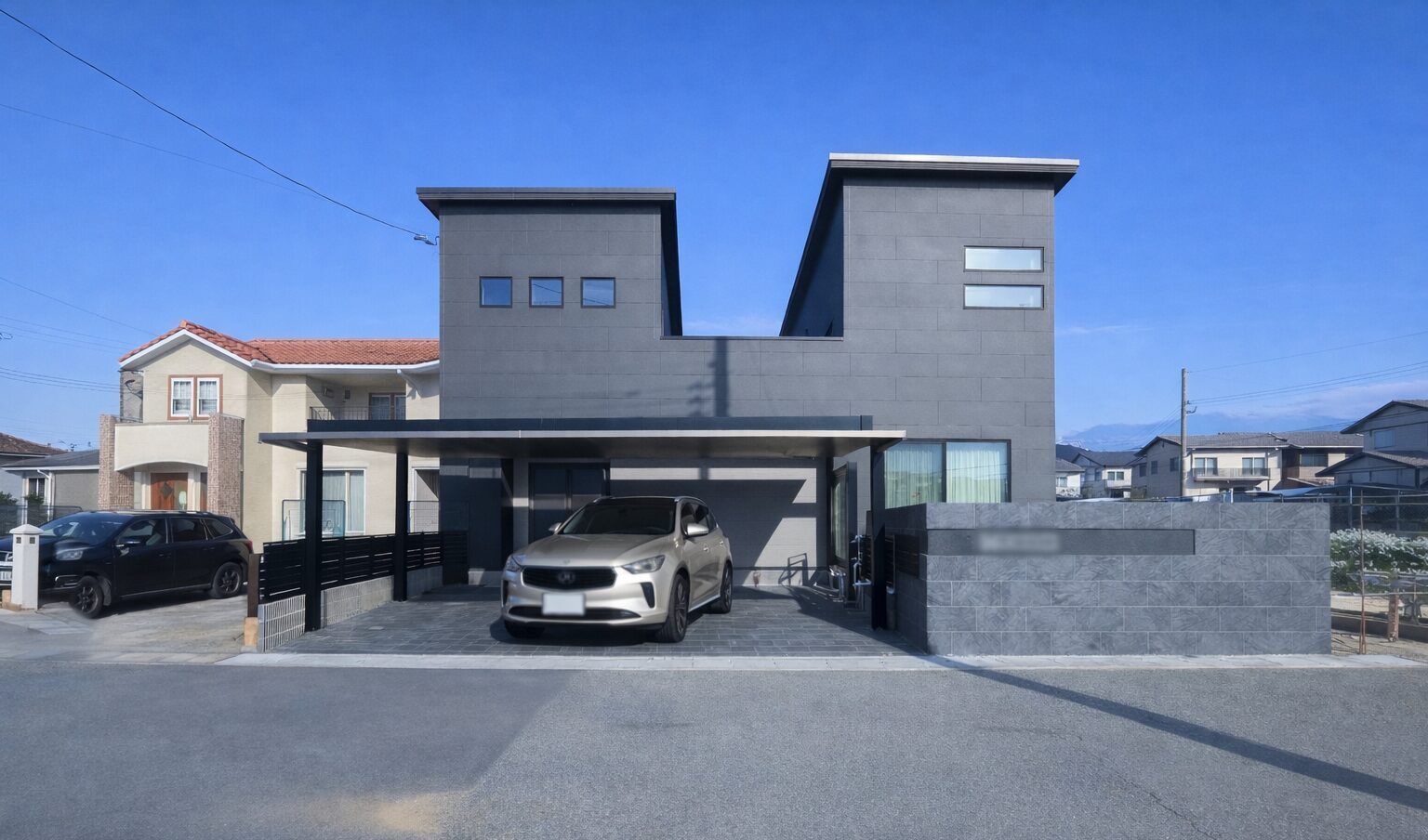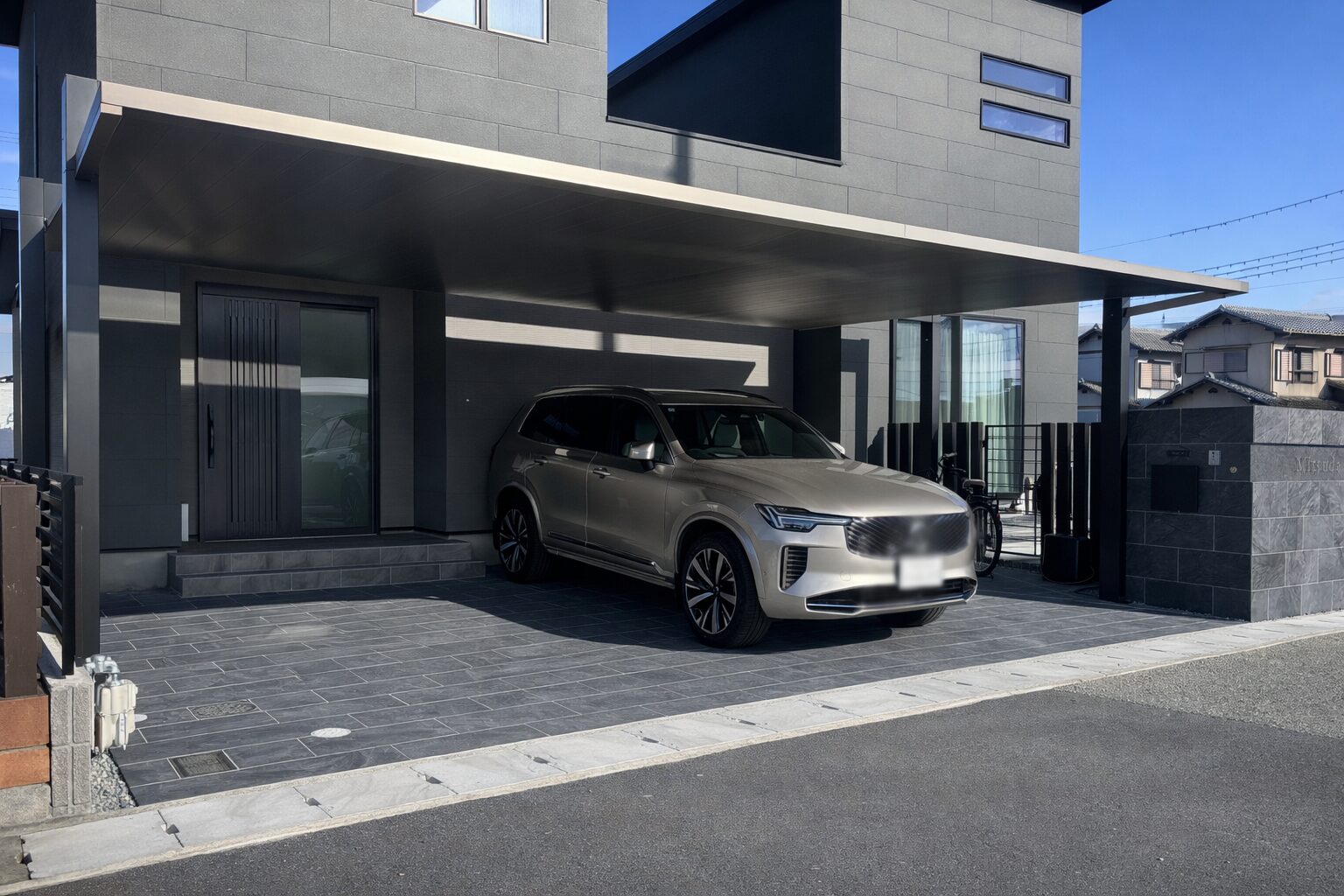 カーポートには三協アルミ FII アーバングレーを採用。