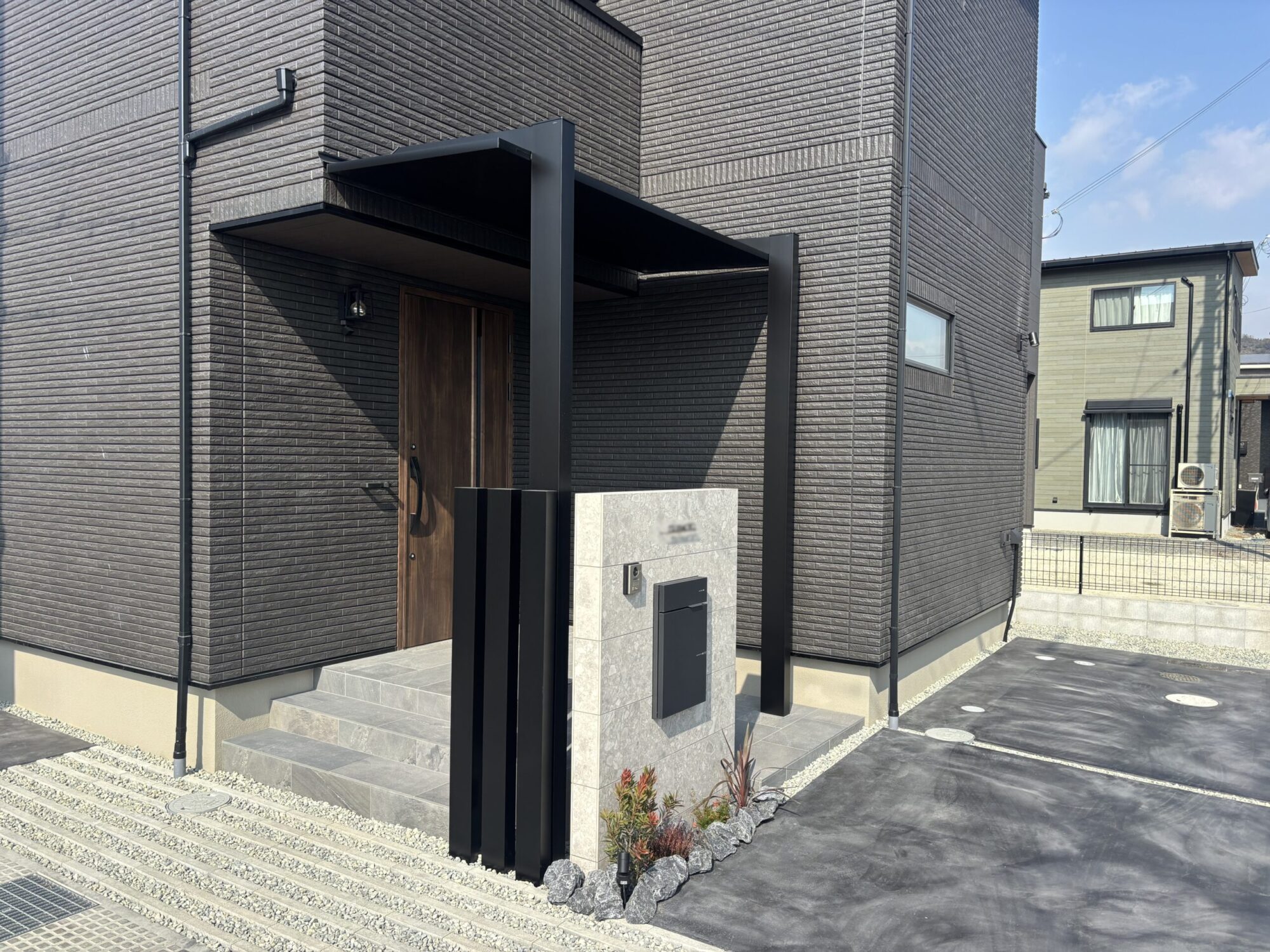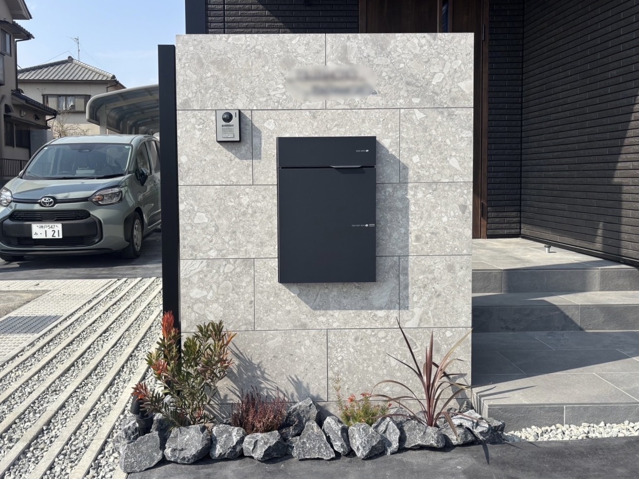 建物の雰囲気に合わせてモノトーンでまとめ、門まわりがすっきり見えるデザインに仕上げました。