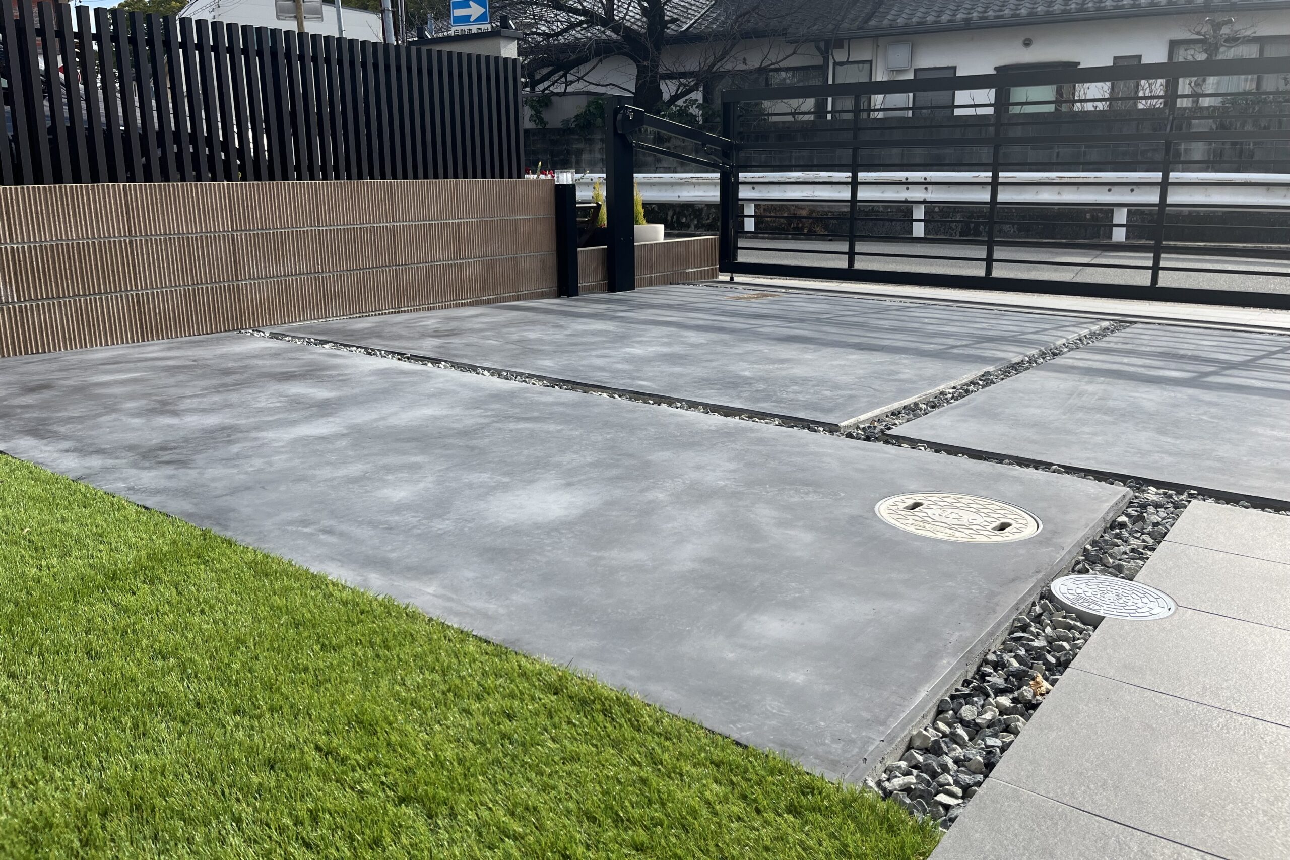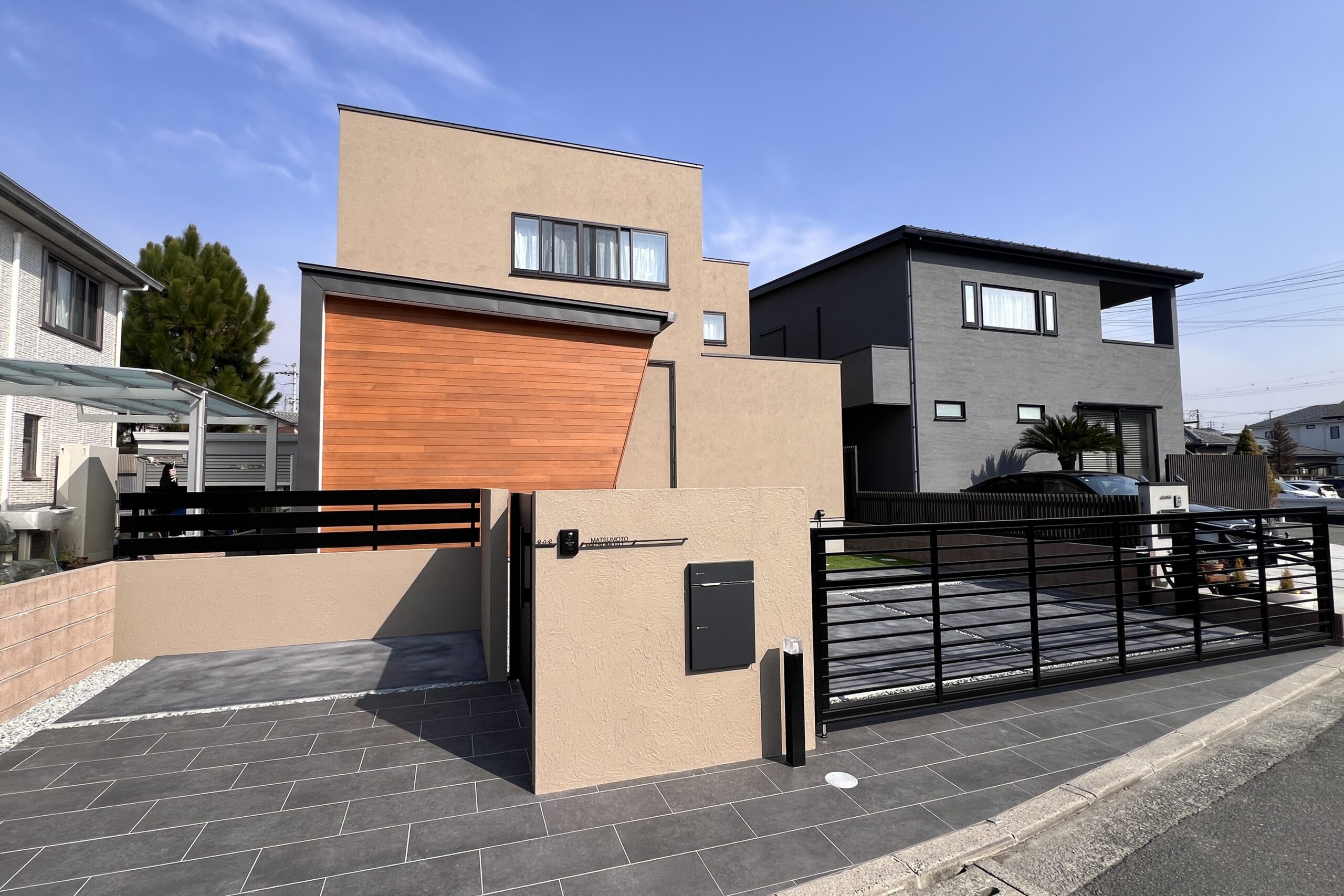 駐車のしやすさだけでなく、道路からの見通しや動線も考えながら門まわりの配置を整えています。